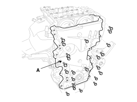 Снимите крышку цепи привода ГРМ (А), осторожно поддев зазоры между головка блока цилиндров и блок цилиндров.