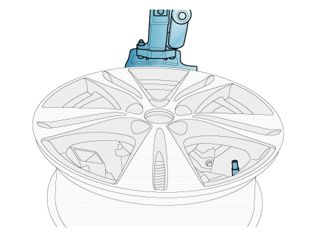 Чтобы установить нижний буртик, установите клапан в положение «5 часов». относительно головы на шиномонтажном станке.