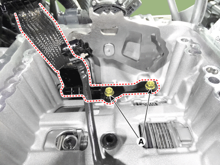 Снимите главный жгут проводов (А) после откручивания болтов.
