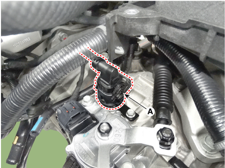 Снимите разъем электромагнитного клапана (А), нажав вниз с коробки передач.