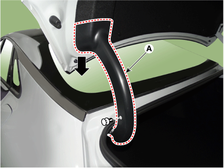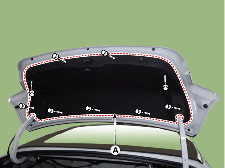 Ослабьте зажимы крепления и снимите обивку крышки багажника (А).