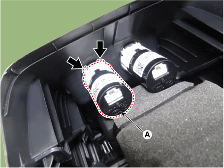 Снимите зарядное устройство USB (A), нажав на крючки.
