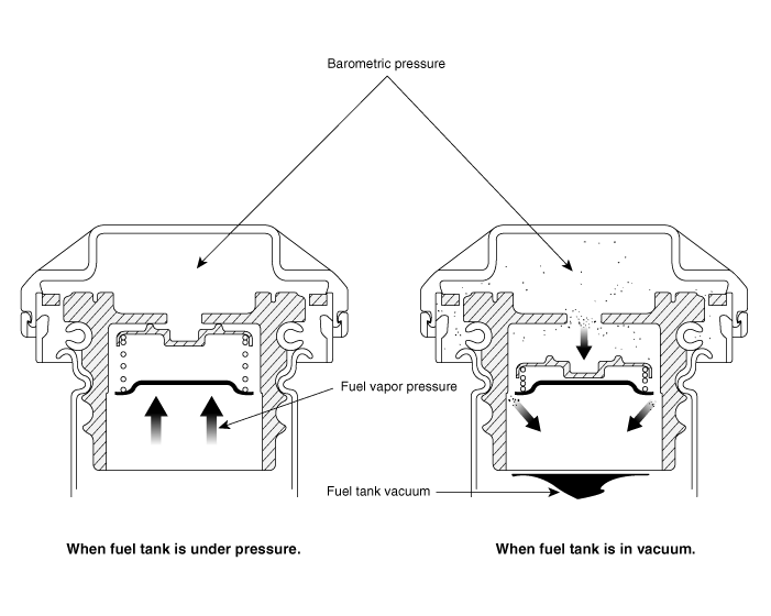 Визуально проверьте, что узел крышки топливного бака и прокладка (А) не повреждены. деформированы или повреждены.