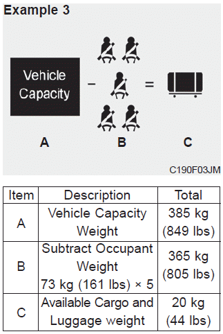 4. Полученная цифра равна доступному количеству грузов и багажа. емкость. Например, если количество «XXX» равно 635 кг (1400 фунтов) и будет в вашем автомобиле должно быть пять пассажиров весом 68 кг (150 фунтов), количество доступного груза а грузоподъемность багажа составляет 295 кг (650 фунтов).