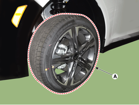 Установите колесо и шину (А).