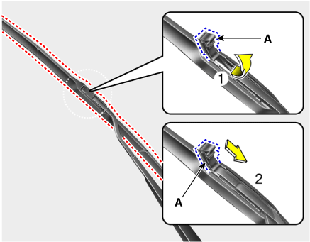 Снимите рычаги стеклоочистителя (А), ослабив гайки после снятия колпачков.