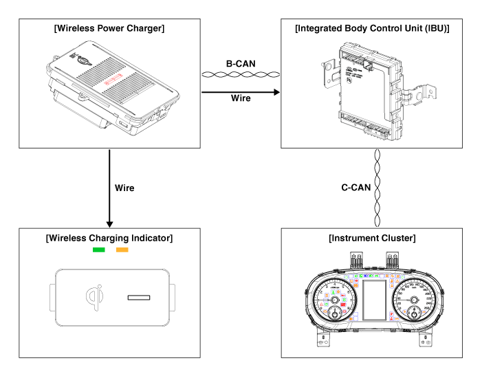 Во время IG ON напряжение батареи подается в систему беспроводного зарядного устройства. для передачи мощности 5 Вт на мобильный телефон.