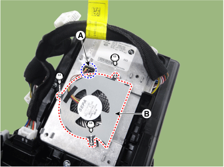 Снимите крышку поддона беспроводного зарядного устройства (A), ослабив крепления. винты.