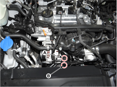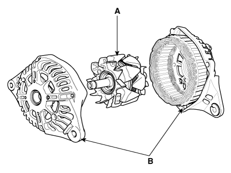 Отсоедините разъем генератора (А) и кабель генератора «В» (В) от клеммы.