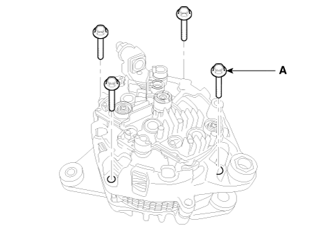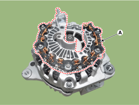 Снимите узел выпрямителя (А) после отсоединения проводов статора.