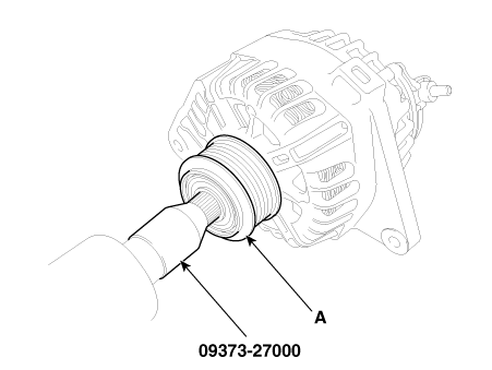 Используя SST (09373-27000), снимите шкив OAP (A).