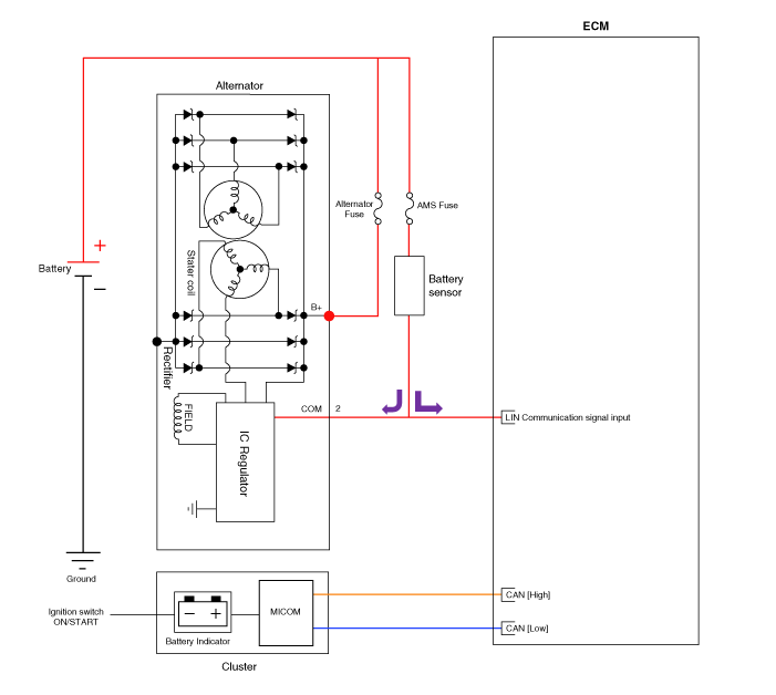 2. OAP: обгонный шкив генератора 3. Ротор 4. Статор 5. Выпрямитель |