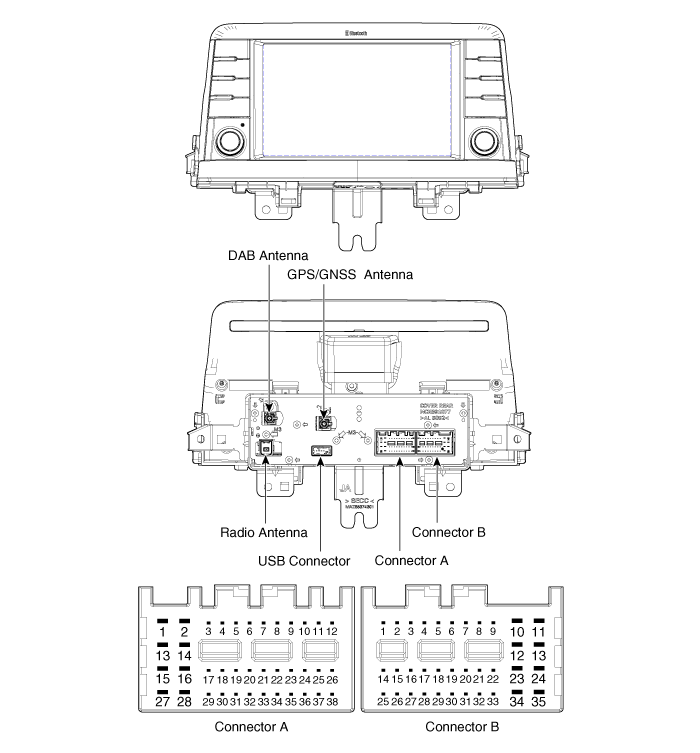Установите головное устройство AVN после подключения разъемов головного устройства AVN и кабеля.