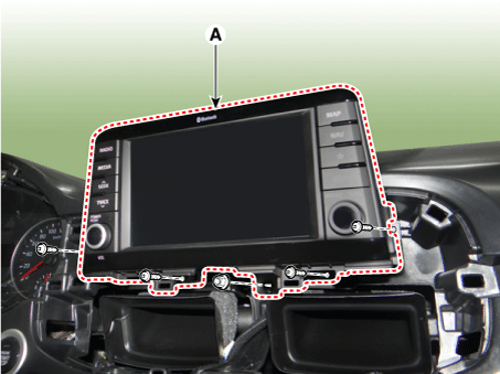 Снимите головное устройство AVN (A), предварительно ослабив крепежные винты и гайку.