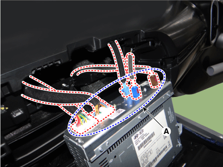 Снимите головное устройство AVN, предварительно отсоединив разъемы и антенный кабель (А).