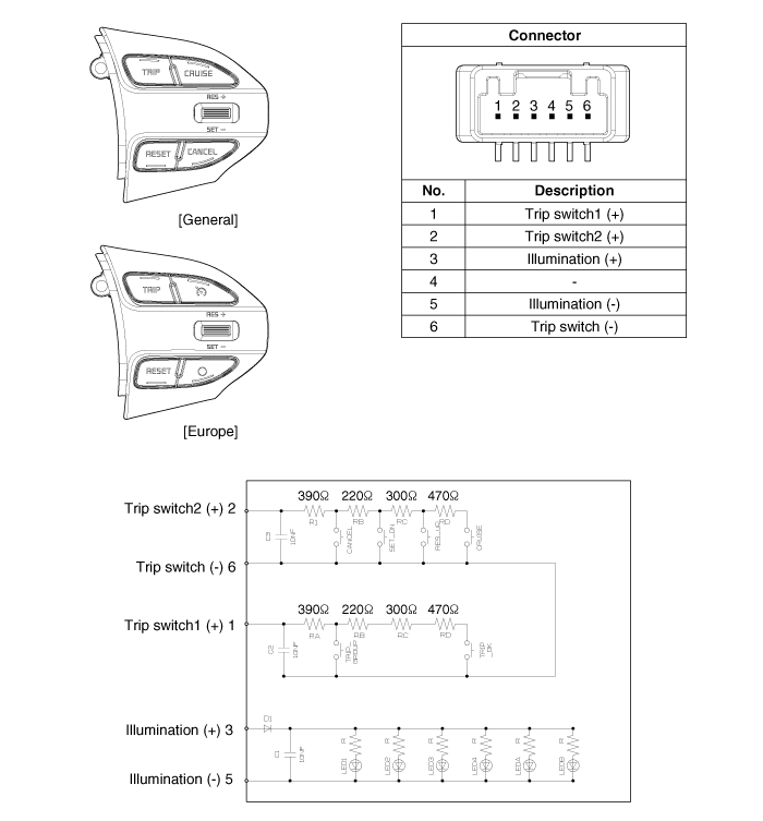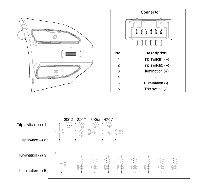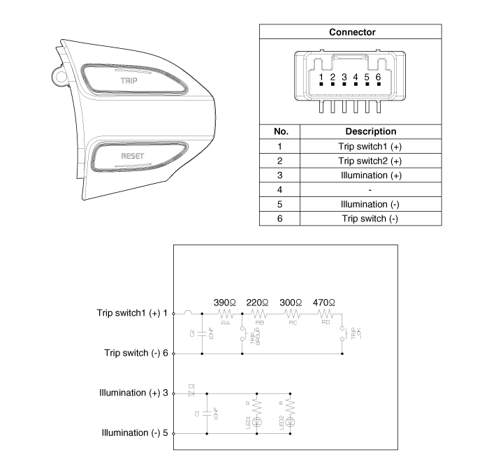 Проверьте сопротивление между клеммами в каждом положении переключателя (RH).