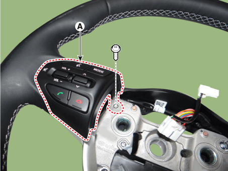 Снимите пульт дистанционного управления с рулевого колеса (А), предварительно ослабив крепежные винты.