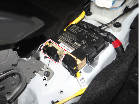 Отсоедините разъем (А) модуля управления подушками безопасности (SRSCM).