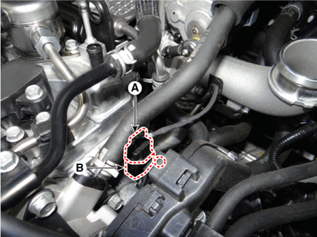 Снимите датчик (В), ослабив крепежный болт.