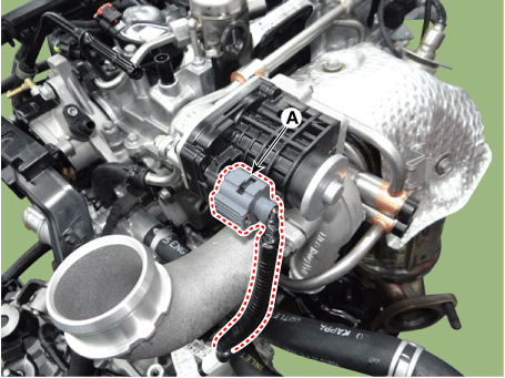 Отсоедините удлинительный разъем (А) электрического привода перепускной заслонки (EWGA).