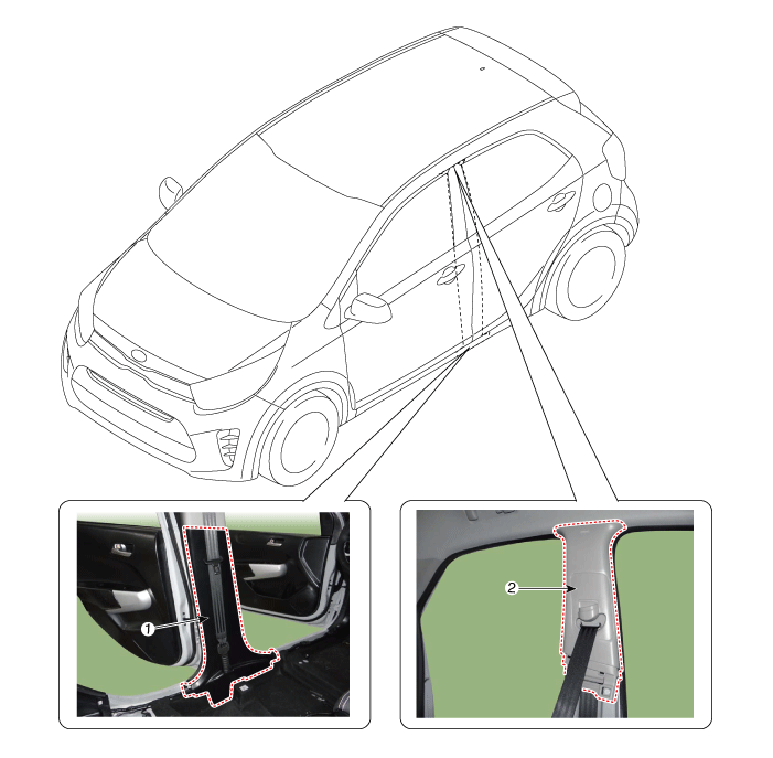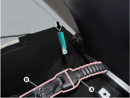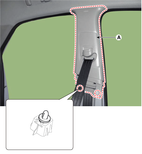 Снимите нижнюю облицовку центральной стойки (А) с помощью съемника.
