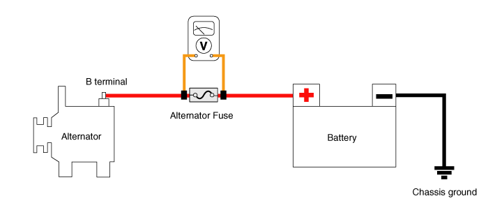 Подключите амперметр между клеммой аккумулятора (-) и кабелем заземления.