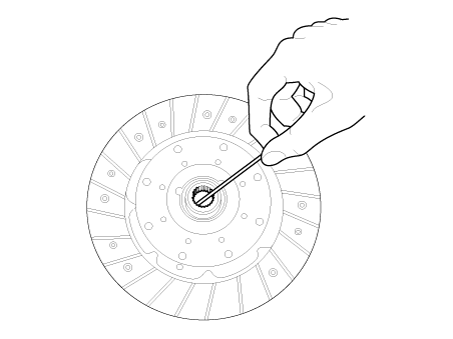 При необходимости нанесите смазку на шлицевую часть диска и шлицевую часть первичного вала коробки передач.