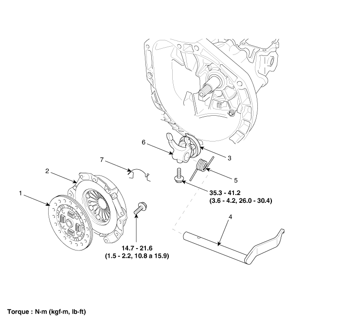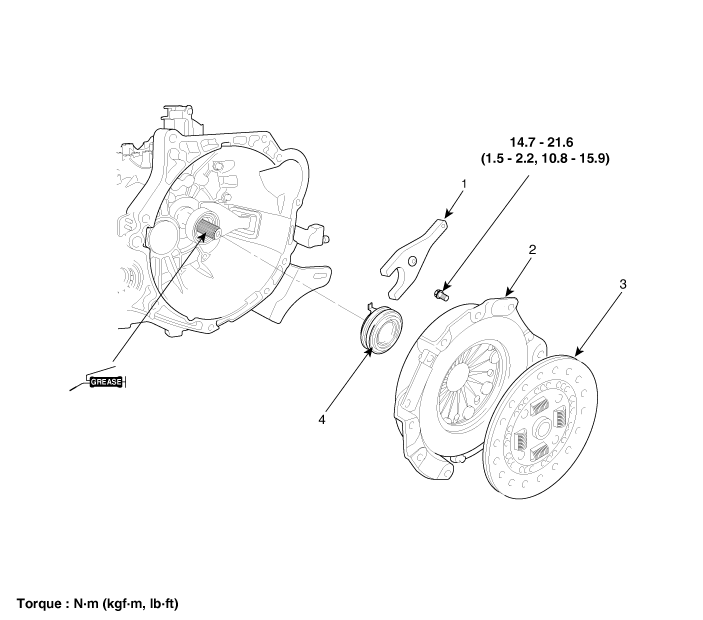 2. Крышка сцепления в сборе 3. Подшипник выключения сцепления 4. Рычаг выключения сцепления в сборе |