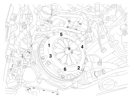 Снимите болты крышки сцепления. Будьте осторожны, чтобы не погнуть и не перекрутить болты. Ослабьте болты в диагональных направлениях.
