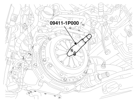 Установите диск сцепления и крышку с помощью SST (A: 09411-1P000).
