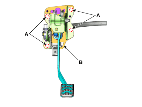 Снимите педаль сцепления (В) после ослабления гаек крепления (А).
