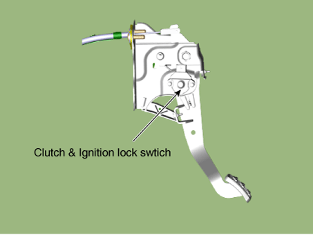 Выключатель блокировки зажигания установлен на педали сцепления.