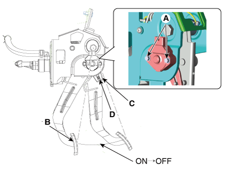 Поверните рычаг переключателя в направлении стрелки, чтобы проверить рабочую точку (А).