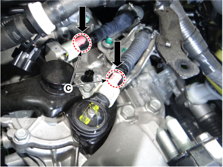 Нажмите на замок (C) после установки троса управления на вал управления.