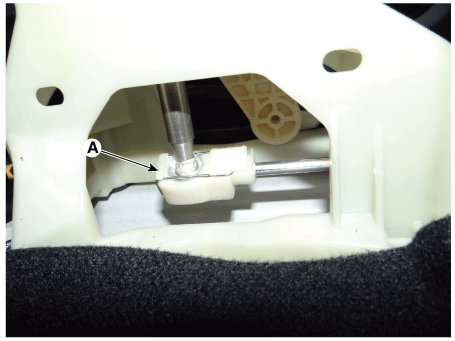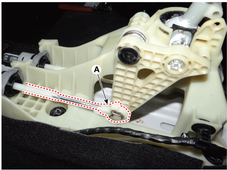 Снимите стопорный штифт (А), а затем снимите трос выбора со штифта рычага переключения передач.