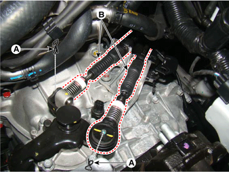 Снимите кабельные разъемы (А) с рычага переключения передач.