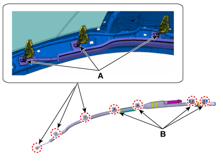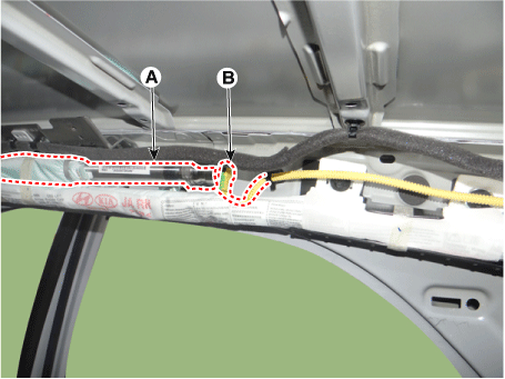 Отсоедините разъем (В) от модуля шторки безопасности (А).
