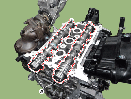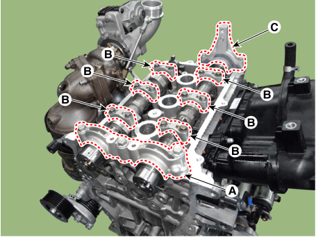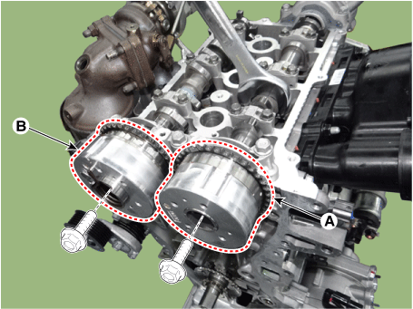 Снимите впускной CVVT в сборе (A) и выпускной CVVT в сборе (B).