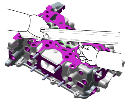 Если плоскостность больше максимальной, замените головку блока цилиндров.