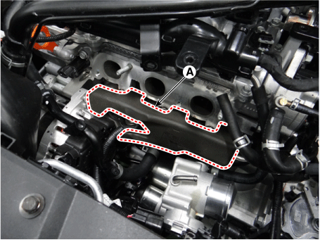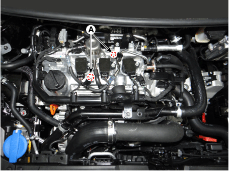Отверните болты крепления (А) и затем отделите топливопровод низкого давления.