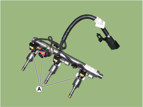 Отсоедините форсунку и разъем датчика давления в рампе (А).