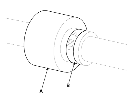 Осторожно отделите динамический демпфер (A) от вала (B).
