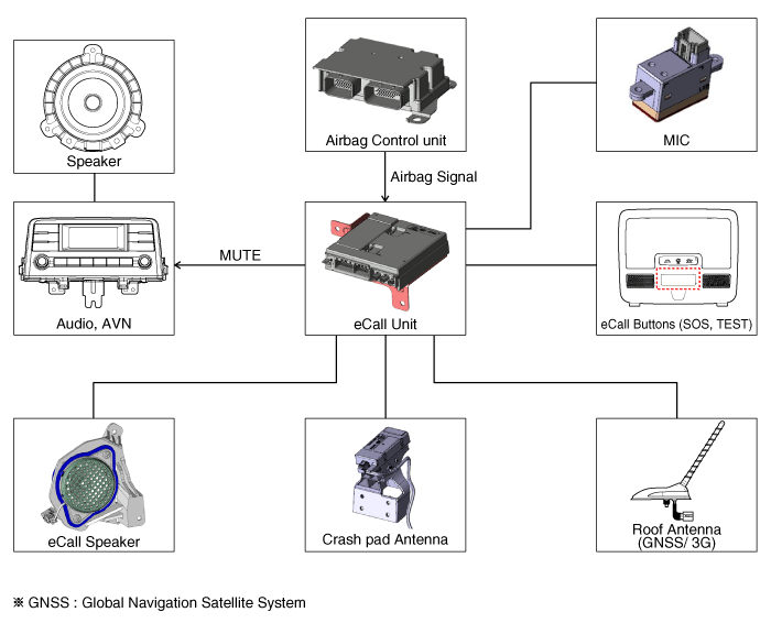 Устройство eCall для AVN установлено в головном устройстве AVN.