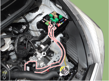 Отсоедините проводной кабель блока предохранителей (А).