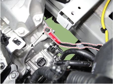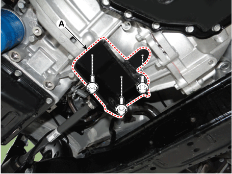 Снимите кронштейн крепления двигателя (А).
