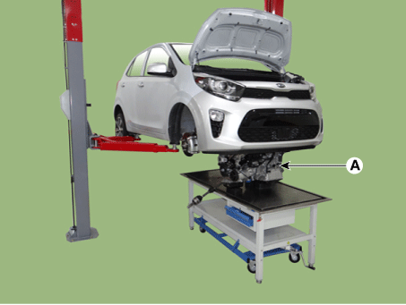 Поддержите двигатель и коробку передач в сборе с помощью подъемного стола.