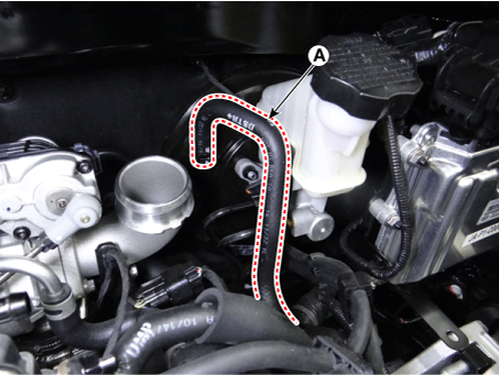 Отсоедините вакуумный шланг усилителя тормозов (А).