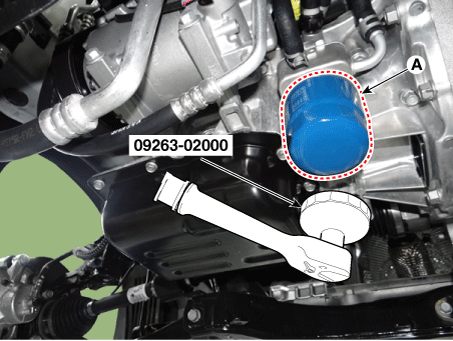 Установите пробку сливного отверстия (А) с новой прокладкой.