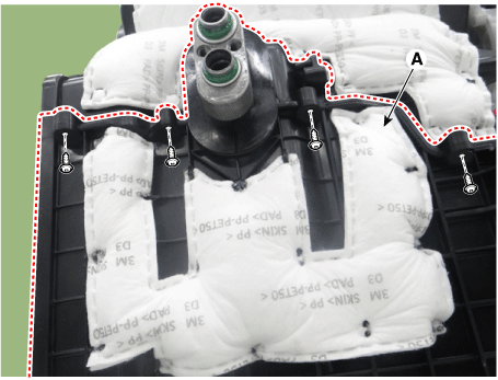 Снимите сердцевину испарителя (А) с блока отопителя.