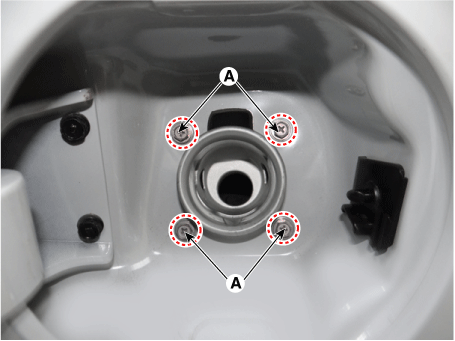 Откройте лючок топливного бака и отверните болты крепления горловины (А).